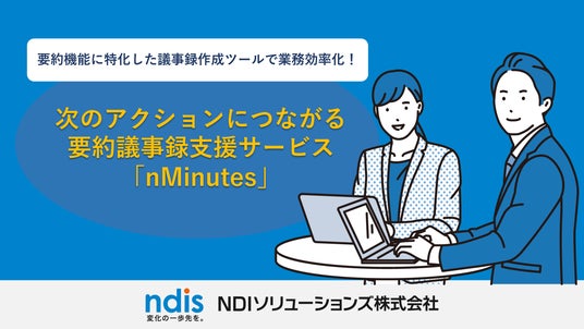 nMinutes(エヌミニッツ)は要約議事録の作成支援に特化したクラウドサービスです。PCまたはスマートフォンのブラウザから利用可能で、会議の情報を短時間で要約し、必要な情報だけを効率的にキャッチすることで、次のアクションにつながるサポートをします。要約議事録の利用頻度が高いビジネスの現場において、価格・使いやすさに優れたnMinutesは、議事録作成業務の効率化に大いに役立つことでしょう。