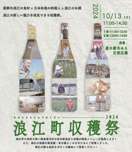この度、収穫祭実行委員会(実行委員長・鈴木大介/株式会社鈴木酒造店 代表取締役)は、農作物などの収穫期である10月に、浪江町周辺で収穫された、農産物や水産物などの地産食材で調理した料理を楽しめる一般消費者向け食イベント「浪江町収穫祭」を開催します。