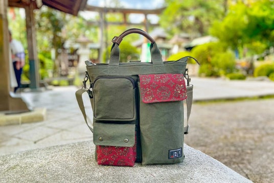 漆3WAYショルダーバッグ|日乃本帆布(株式会社三香堂)(山形県)城下町の面影残る山形県米沢市の工房が手がける3WAYショルダーバッグ。耐久性や撥水性にすぐれ、長く使える素材「帆布」素材。小型のノートパソコンやA4ファイルがすっぽり入るサイズで、トートバッグ、ショルダーバッグ、リュックの3通りに変身。