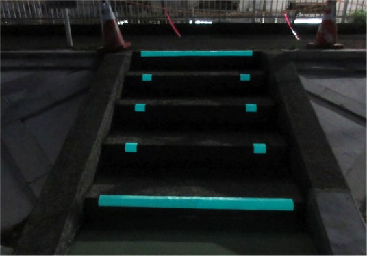 長さ3mの蓄光塗装を等間隔に施工