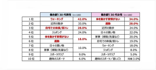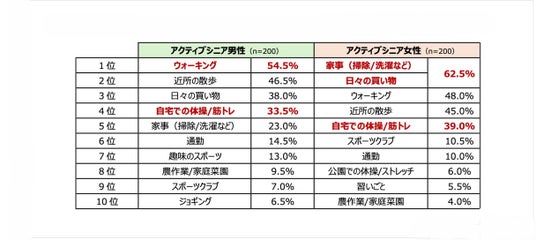 シニア女性は「家事(掃除/洗濯など)」&「日々の買い物」(62.5%)で工夫しながら日々、体を動かし働き盛り30代女性は「体を動かす習慣がない」(34.0%)、「通勤」(28.0%)が運動代わりに…