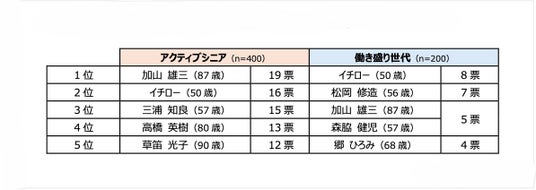 アクティブシニアのトップ3は・・・ 「加山雄三(87歳)」 「イチロー(50歳)」 「三浦知良(57歳)」