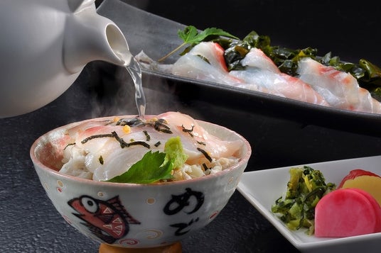 地元で水揚げされた真鯛をふんだんに使った人気の「鯛めし朝食」。地場産食材をふんだんに使用したお料理に加え、鯛の骨をしっかりと焼き、丁寧に取った出汁の旨みを堪能できるこだわりの「鯛茶漬け」をご用意いたします。まずは、鯛めしで1杯。次に鯛の刺身と一緒に2杯。最後に鯛出汁をご飯にかけて3杯と3度おいしい朝食を提供いたします。