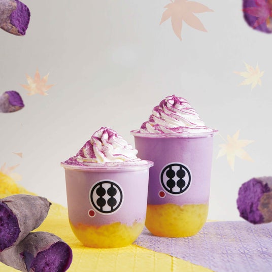 『むらさき芋のわらびもちドリンク』は、今年で3年目を迎え、より秋の贅沢を味わえる新バージョンで復活!さつまいもそのものをしっかり感じる濃厚なわらびもちクラッシュ仕様で、しっかりお芋を味わいたい方へオススメ!飽きのこない、絶妙な甘さがわらびもちを引き立てます。