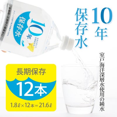 災害・非常時保存用「10年保存水」(10年保存可能)1.8リットル×12本セット[高知県室戸市] 寄付金額:13,000円