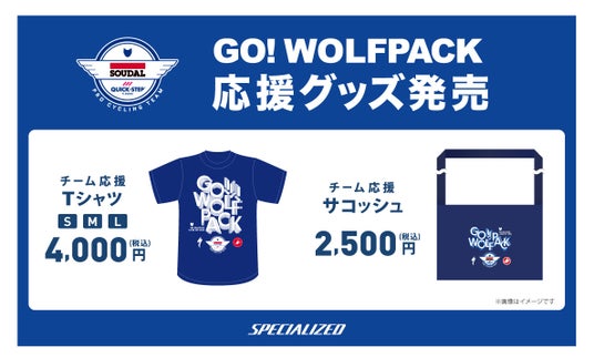 チームプレゼンテーション、クリテリウム、ロードレースの各会場に出展するブースでは、チームキットのカラーに因んだ青を基調としたGO! WOLFPACK応援グッズを販売いたします。