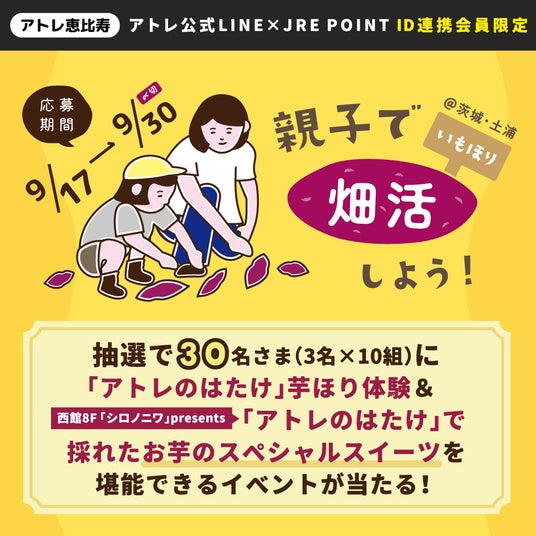- 親子で畑活・食育!「アトレのはたけ」芋ほり体験&採れたお芋のスペシャルスイーツを堪能しよう!