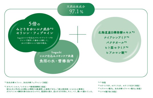 ・豊富なみどりまゆシルク成分をライン使いの約5倍配合。