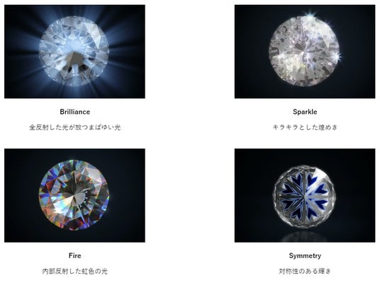 IDEAL CUT DIAMOND(R)とは、世界最高水準のカットグレードを誇るダイヤモンドです。4C(カラット、カラー、クラリティ、カット)のうち、唯一人の手による加工が関わるカット評価はダイヤモンドのグレードにおいて最も重要な要素です。