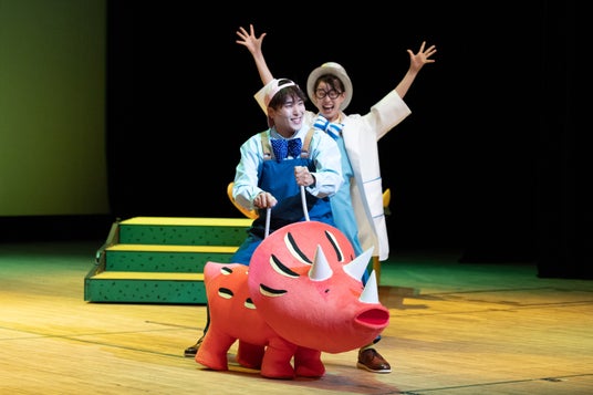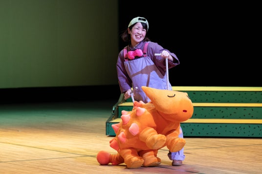今回の公演は、『おまえ うまそうだな』と『きみはほんとうにステキだね』の2本のおはなしを上演。絵本の絵柄をそのまま立体化した、愛らしい恐竜たちがステージに登場し、暖かな世界観を作り上げる。物語の途中で歌が入ったり、映像を使ったりと、子どもたちも飽きずに楽しめる工夫も満載だ。物語と物語の間には、観客が好きな恐竜を答えるコーナーや一緒に参加できるクイズも。子どもたちの笑顔が弾ける時間となっている。