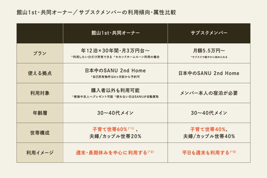 (*2)オーナー利用希望に関するアンケートより、「週末・長期休みに利用したい85%」(*3)サブスクメンバーの利用実績より、「平日:週末利用=6:4」