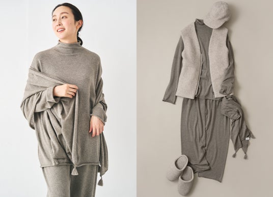 今シーズンの注目アイテムとして、贅沢な無縫製ニットのリラクシングウェア、通称「ファーストクラス」が登場します。【なめらかなハイゲージニット×シームレスな無縫製】で編み上げたとろみのある着心地。高級感のある編み地は、旅先の上質なワンマイルウェアとしてもおすすめです。