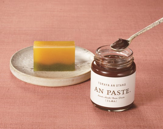 新年を祝うにふさわしい巳の姿を表現した干支羊羹「春日の巳」。食卓で餡を手軽に味わう楽しみを提案する<トラヤあんスタンド>の2種類のあんペーストとともにお届けします。