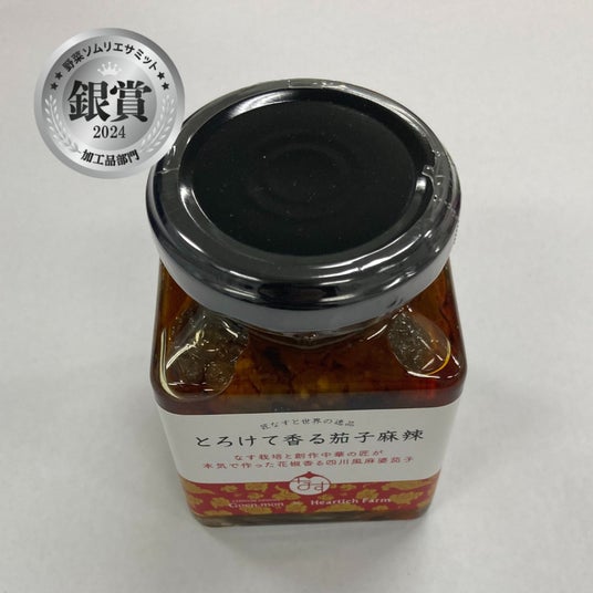 茄子を日常の食卓のお供にしていただくために、1年以上をかけて開発した、常温保存できる麻婆茄子の瓶詰。創作中華のシェフによるレシピ開発と、独自の調理工程で日本初の茄子入りの麻婆茄子の加工品となっている。添加物・化学調味料不使用の、花椒の香る本格麻婆茄子をご堪能ください。