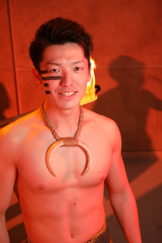 ファイヤーナイフダンスは、南太平洋の島国サモアの伝統的な戦士の勝利のジェスチャーに由来する踊りで、毎日公演しているシバオラ単独ショー、昼と夜のポリネシアンショーのなかで披露され、フラガールショーと並んで高い人気を誇っています。特に夜のポリネシアンショーのソロダンスでは、2丁のナイフを操る高度なパフォーマンスが要求され、ソロダンサーとしての技術と迫力が試されます。また、2丁のナイフを操るだけでなく、炎が映える暗い夜のステージを縦横無尽に使いながら、1人でお客様を惹きつけ、盛り上げる技術も求められます。ノア湧太は、夜のポリネシアンショーのソロデビューで、名実ともに真のファイヤーナイフダンサーとしての第一歩を踏み出すことになります。