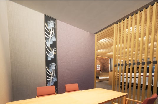 両社の足利銘仙は洋服地として使用されることが主であり、ショールームのインテリアとして使用されるのは当件が初の試みです。生地デザインについては、当ショールームの雰囲気に合わせたオリジナルであり、線や円をふんだんに取り入れ、「人とクルマと地域の交わり」を足利銘仙ならではの技術で多彩な輝きとともに表現しています。