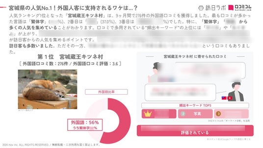 - 調査方法:「口コミサイトを”もっと”売上に変える」口コミコム(インバウンドオプション)を利用して、調査リソース上のデータを独自に分析