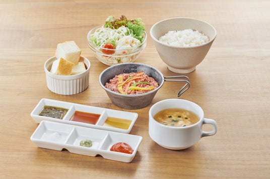 サラダ・スープバー・ライス・パン・ソース(6種類)付き