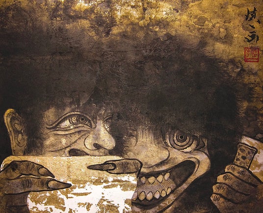 日本のアイデンティティと芸術表現の未来を探求する若佐慎一。不安と危機に晒され続ける時代にあって、日本の風土で育まれた価値観に次代のヒントがあるといい、「百鬼夜行的なカオス的事象を引用」した作品の制作に意気込みます。世界に跋扈する魑魅魍魎を巻き込んでいくエネルギーに満ちた若佐慎一の世界観にぜひご期待ください。