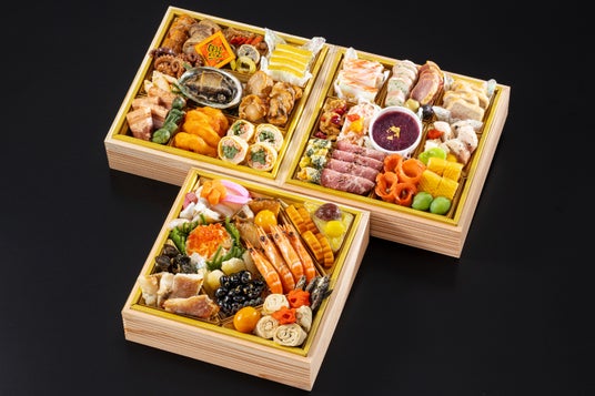 年末の食卓を華やかに飾る、和・洋・中の豪華な三段重おせち。各ジャンルの趣向を凝らした逸品をご賞味ください。