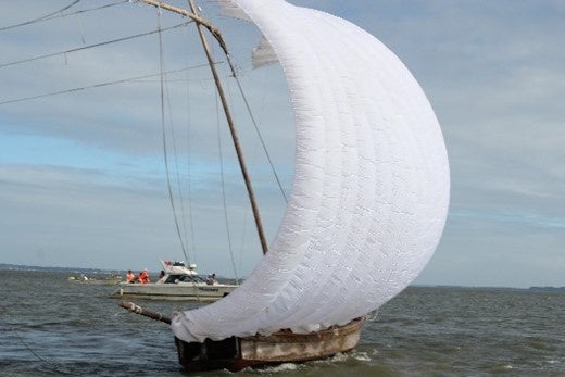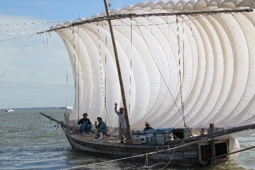 ※帆引き船そのものに乗るのではなく、見学船に乗って湖上からの見学となります。