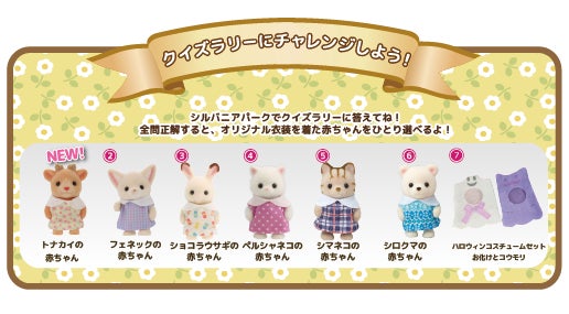 イベントまでの間、シルバニアパークの一般営業時間もお楽しみいただけます。入場特典のクイズラリーでは、全問正解すると「シルバニアパークオリジナル赤ちゃん人形」が選べます。季節で登場する限定衣装を手に入れたり、まだ持っていない赤ちゃん人形を見つけたりと、思わず集めたくなること間違いなし。
