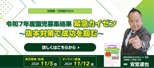 ~幼稚園・こども園の経営者向け【令和7年度園児募集結果】緊急カイゼン~抜本対策で成功を掴む~ 11月5日・東京開催 / 11月12日・Online開催~