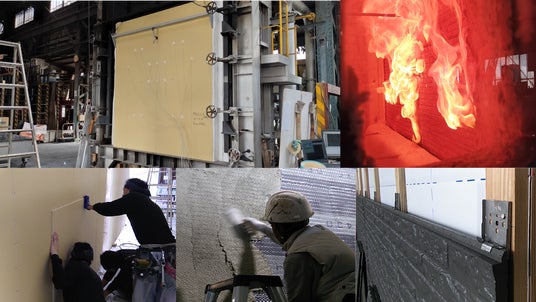 厳しい燃焼試験をクリアし、W断熱の45分準耐火構造大臣認定を取得しました。