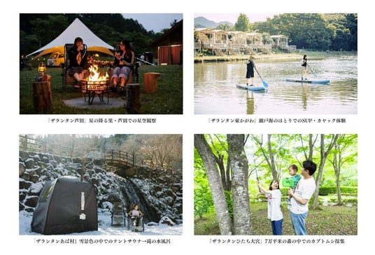 マーケット調査よりみえた「グランピング施設は高い」という消費者課題に対し、遊休公共施設や遊休地を利活用したハード開発によりリーズナブルな価格設定を実現。地域性のある滞在型コンテンツの充実により高い顧客満足度を誇る。BBQ、焚き火、テントサウナなどの全施設共通のアクティビティにとどまらず、日本の原風景の残る山村地域では山菜狩りや野菜収獲体験、渓流釣りを提供し、瀬戸内の海沿い地域ではSUP、北海道では星空観察、雲海ツアーを提供するなど地域ごとに滞在をデザイン。結果、「ザランタン」施設全体で累計宿泊数は60,000人を突破。地域住民を含む新規雇用を200名以上、地域事業者との新規取引を150社以上創出。他にも、定住人口400人の岡山県津山市阿波村では、開業前はほぼ0だった「あば村」のGoogleキーワード検索数は現在(2024年4月)月間1万回を超えるなど、関係人口の創出・拡大にも寄与する。
