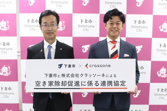 解体工事DXプラットフォーム「クラッソーネ」を運営する株式会社クラッソーネ(愛知県名古屋市、代表取締役CEO:川口 哲平、以下「当社」)は、茨城県下妻市(以下、「下妻市」)と「空き家除却促進に係る連携協定」を締結いたしました。昨今、全国的にも社会課題となっている空き家問題への対策として、下妻市の空き家除却を推進することで、安全安心なまちづくりを目指します。また本締結で、当社の自治体連携の実績は89自治体(行政運営の団体含む)となりました。