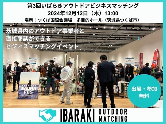 その一環として、茨城県内のアウトドア事業者とアウトドア事業への参入に関心のある事業者をつなぐイベント「第3回いばらきアウトドアビジネスマッチング」を、2024年12月12日(木)に「つくば国際会議場(茨城県つくば市)」で開催します。