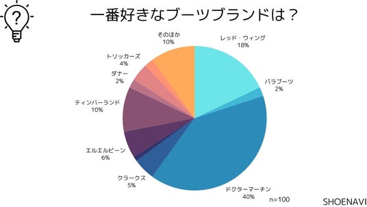 100人にアンケートを実施したところ、ドクターマーチンが多い結果となりました。