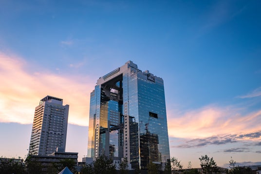 梅田スカイビルは、2つのビルが屋上を含む上層部「空中庭園」でつながる独特のフォルムの連結超高層ビル。