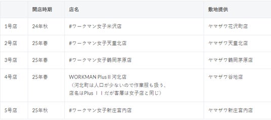 お陰様で山形県はワークマン既存店が強い地域のため、新業態の#ワークマン女子店(1店のみ名称はWORKMAN Plus II店)も株式会社ヤマザワのご協力を得て以下の通り出店攻勢をかけます。県下で5店舗体制になると、人口20万人に対し女子店が1店舗になるので、山形県が女子店の出店密度で全国1位になります: