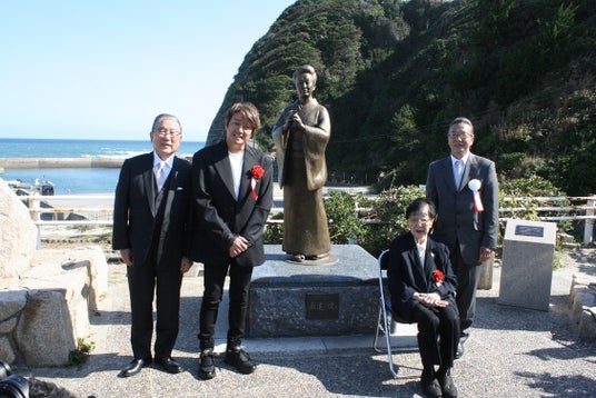 除幕式に出席した加藤氏は銅像移設に尽力してくれたいわき市の方々に感謝しながら、「ここに来るべくして来た銅像のような気がします。二度と悲しいことが起きないように、うちのおふくろにも祈り続けてもらおうかと思っています」と話しました。