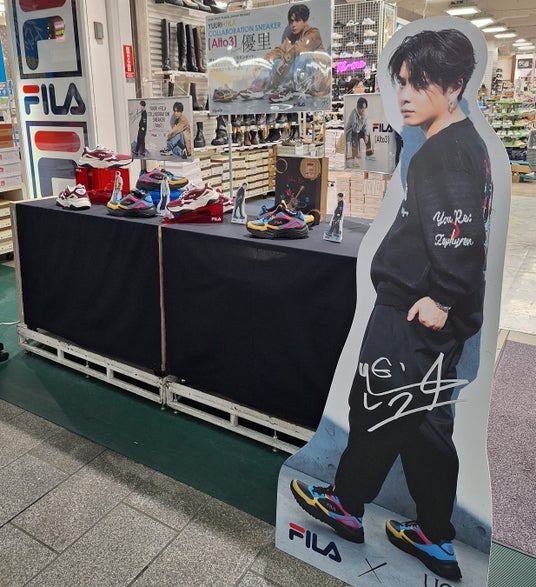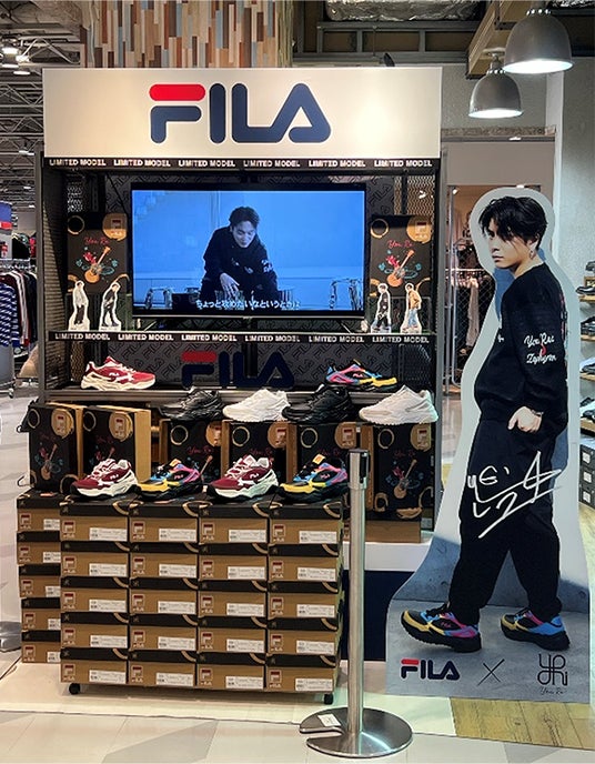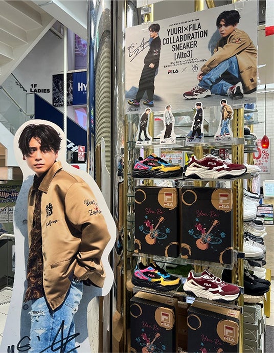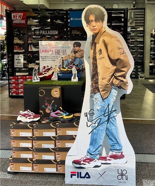 今回発売された優里さんとFILAのコラボスニーカーは、すでに10月12日(土)から4店舗限定で先行販売がスタートしており、この店舗でしかお目にかかれない優里さん等身大パネルなどを設置し、売場は大変な盛り上がりを見せています。