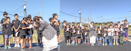 イベントの一環として、もえのあずきさんと共に稲刈りを行った地元の子どもたちや、ボクシングチーム「相馬キッズボクシングクラブ」、陸上チーム「Nexus one」のメンバーに「もえあず米」の贈呈式が行われました。この贈呈式は、もえあず米プロジェクトの一環として、地域の子どもたちに相馬市産のコメの魅力を感じてもらうことを目的としています。