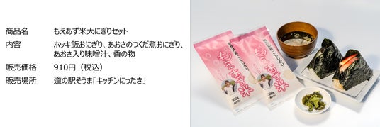「道の駅そうま」内のレストラン「キッチンにったき」では、相馬市産のもえあず米を使用した特別メニュー「大にぎりセット」を発表しました。このセットには、相馬市を代表する食材を活かした2種類のおにぎり、ホッキ飯おにぎりとあおさのつくだ煮おにぎりが提供されます。ホッキ飯おにぎりは、相馬市を代表する郷土料理であるホッキ飯をおにぎりにした、海の恵みを存分に味わえる一品です。一方、あおさのつくだ煮おにぎりは、磯の香りと風味が広がる相馬の海産物を活かしたもので、素朴でありながら深い味わいが特徴です。さらに、セットにはあおさ入りの味噌汁と香の物が付いており、相馬市の自然の恵みと食材の豊かさを存分に楽しむことができます。また、「大にぎり」の名の通り、1個1合もある大にぎりにも無料で変更が可能です。