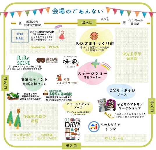 ※雨天時は規模を縮小して、TomorrowPLAZA2階TreeHALLにて、おひさま手づくり市と新潟県十日町や長野県飯綱町からのお野菜や名産品の販売のみと開催となります。