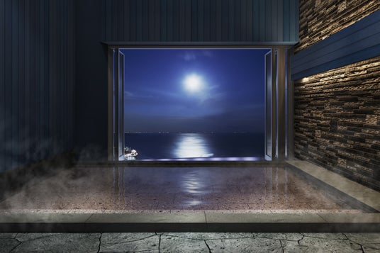 リゾナーレ熱海の大浴場は、2025年3月にリニューアル。ムーンロードをテーマに、壁や天井をミッドナイトブルーに彩ることで神秘的な月の光を演出し、ムーンロードをより際立たせる空間に。その奥に広がる熱海の絶景もこの空間の魅力を引き立てます。また月の美しさだけではなく、温泉に浸かりながら、まるで自分が海と夜空と一体になったかのような幻想的な空間を楽しめます。年間を通して開催している「熱海海上花火大会」の鑑賞もおすすめです。