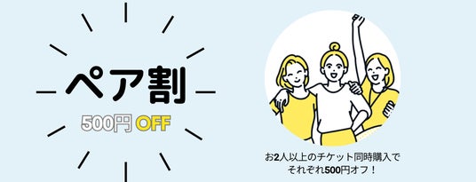 2名以上でチケットを購入すると、それぞれ500円オフになるペア割チケットを数量限定で発売中! お友だちや、家族、一緒に運動をしたい人を誘って楽しく体を動かしましょう!