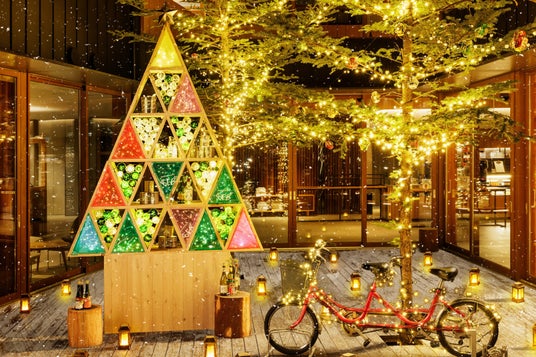 「居酒屋以上 旅未満 みんなでルーズに過ごすホテル」をコンセプトとする「星野リゾート BEB5軽井沢(ベブ)」では、2024年12月1日から25日まで、自転車を漕げば漕ぐほど光るイルミネーション!心も体も温まるイベント「サステナブルクリスマス」を今年も開催します。クリスマスといえば、華やかなイルミネーションや可愛くキラキラしたオーナメントが飾られたツリーが定番。BEB5軽井沢では、太陽光発電や自転車発電でイルミネーションを点灯したり、間伐材やホテル運営で生じた資源を融合してクリスマスツリーを作ったりと、サステナブルにクリスマスを彩ります。今年は株式会社SORENAとコラボレーションし、食物由来のバイオマス素材で作られたランタンバッグに入れて持ち歩く「シードルランタン」が新登場!自転車発電で蓄電したエネルギーでシードルボトルを点灯させます。