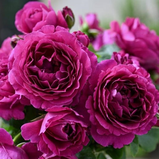 バラ大苗 ル・タン・デ・スリーズ・目を見張る赤紫色と波打つ花弁の中大輪花。