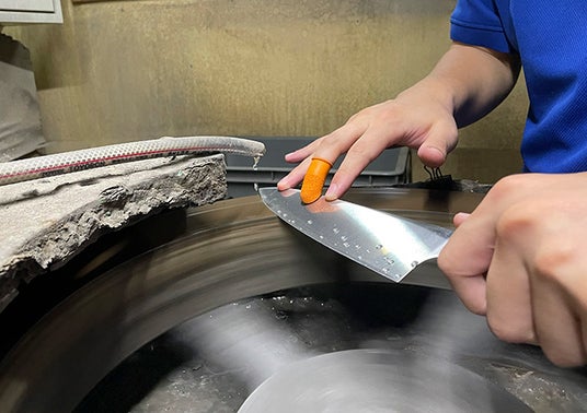 1/100mm単位で刃先を調整できるCNC制御研削機。職人の手を代弁するかのようなこまやかな仕事を早く美しく仕上げます。