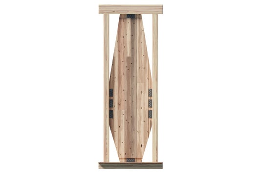 本商品のCLT耐力壁は本年2月に「木造軸組工法」に用いる耐力壁としての国土交通大臣認定を取得。柱と土台や柱と梁が交わる箇所の面材を取り除いた八角形であることが特徴で、大地震時にコーナー部に加わる力を逃がす役割を果たします。また、CLTパネル耐力壁の制作時に出る端材は、スマートフォン用木製スピーカーとして活用し、脱炭素社会(カーボンニュートラル)の実現に貢献したい考えです。