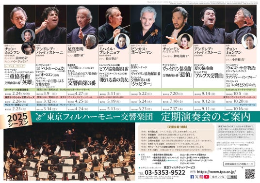 公益財団法人 東京フィルハーモニー交響楽団(以下、東京フィル/東京都新宿区、理事長:三木谷浩史)は2025年2月に開幕する新シーズン定期演奏会のラインナップを発表しました。