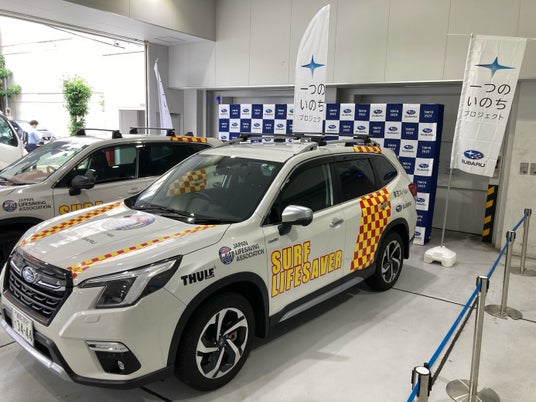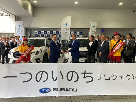 公益財団法人日本ライフセービング協会(=JLA 事務局:東京都港区 理事長:入谷拓哉)と、一般社団法人東京都ライフセービング協会(事務局:東京都港区 理事長:田村浩志)は、東京スバル株式会社(本社:東京都文京区 代表取締役社長:宮澤和彦)より、SUBARUライフセーバーカーを1台ずつ提供いただきました。今年も『水辺の事故ゼロ』をめざし、SUBARUライフセーバーカーと一緒に「一つのいのちプロジェクト」を展開していきます。