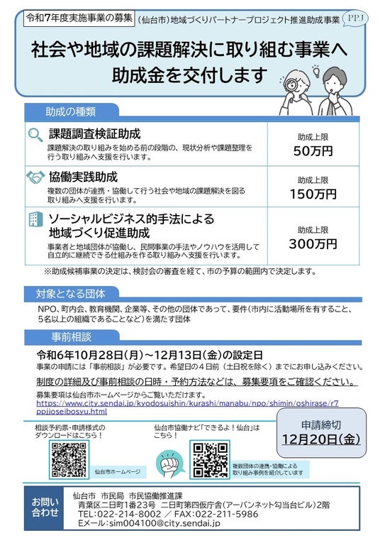 (URL)https://www.city.sendai.jp/kyodosuishin/kurashi/manabu/npo/shimin/oshirase/r7ppjjoseibosyu.html
