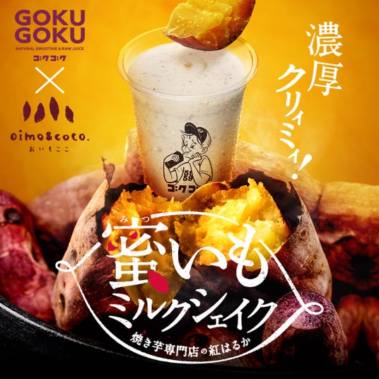 スムージー専門店「GOKUGOKU」と焼き芋専門店「oimo&coco.(おいもここ)」がコラボした、秋の季節限定商品「蜜いもミルクシェイク」が本日発売されました。