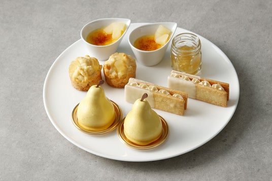 幻の洋なしとの呼び声高い新潟生まれの”ル・レクチェ”を主役に、甘く香ばしいキャラメルを各アイテムと掛け合わせたアフタヌーンティー。洋なしとキャラメルの甘い香りととろけるような味わいを、御殿山の冬景色とともにお楽しみください。